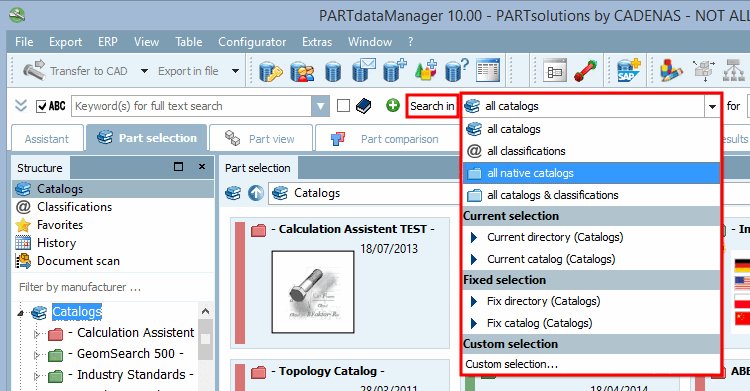 Les informations d'utilisateur sur Rechercher dans [Search in] en général peuvent être trouvées sous Section 3.1.6.1.1, « Chercher dans... : Où ? » in ENTERPRISE 3Dfindit (Professional) - Utilisateurs