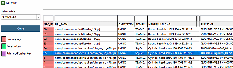 Pour cela, ouvrez PLMTABLE2 dans PARTlinkManager via Menu Outils -> Base de données [Database] -> Éditer des tables supplémentaires [Edit additional tables].