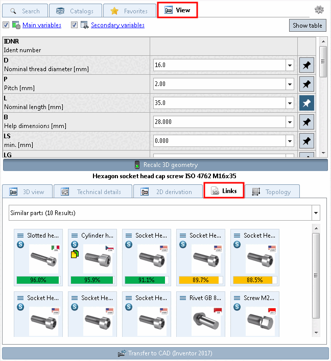 La fenêtre d'ancrage Références [Links] contient des références à des éléments de construction apparentés.