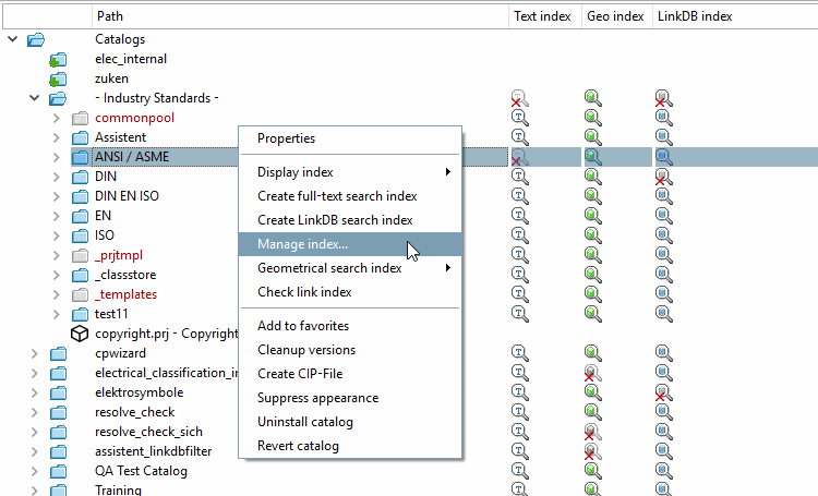Pour plus de détails, voir Section 1.4.3.6.6.5, « Gérer l'index » in ENTERPRISE 3Dfindit (Professional) - Administration.
