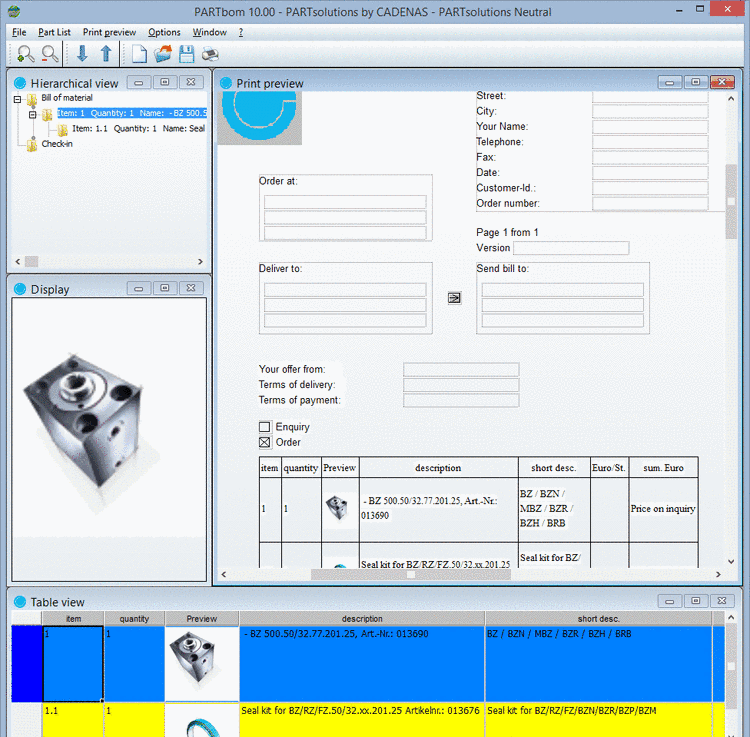 PARTbom (BOM = Bill of Material) is CADENAS' order list management program. You can create order lists with...