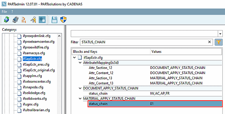 Activez ensuite le statut pour l'article SAP dans le bloc [MATERIAL_APPLY_STATUS_CHAIN].
