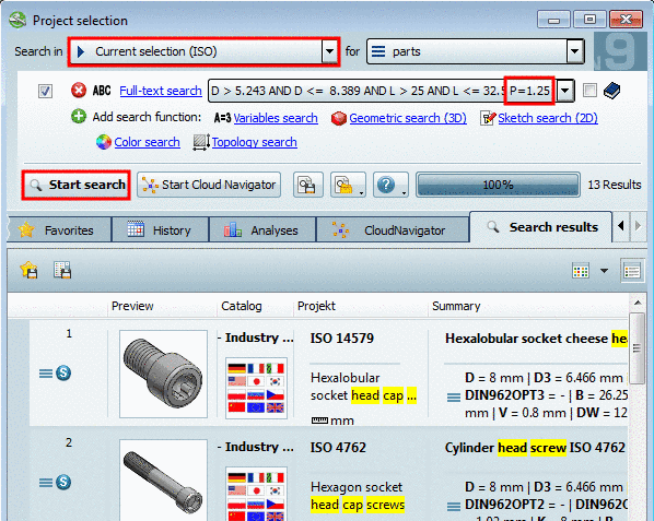 -> In the example in hand now from the settings the variable conditions for D and L are calculated.[53] You can see the created search string in the input field of the Full-text search.