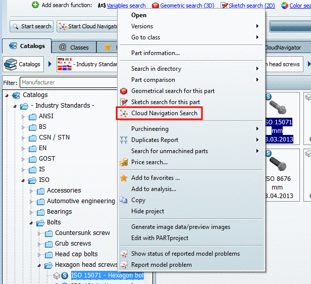 The result in the Cloud Navigator shows all found standard parts