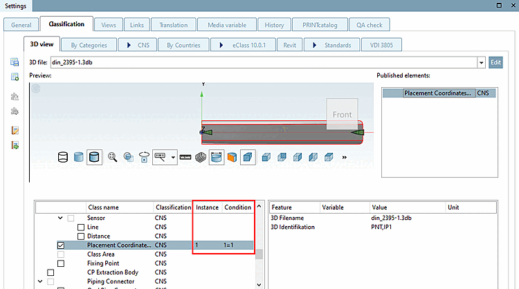 Avec la V12, il est désormais possible de saisir un nom d'instance et une condition pour les classes sous Éléments publiés [Published elements].