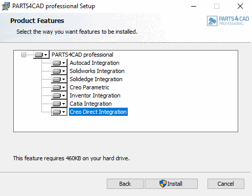 Avec la V12, il existe un nouvel installateur pour PARTS4CAD Professional.