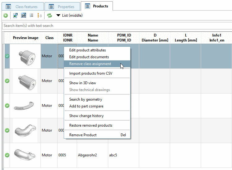 -> Dans la vue des produits [Products], l'attribution de classe est supprimée.