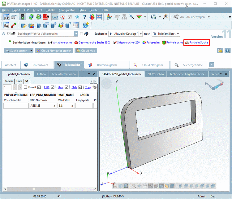 The Search for unmachined parts detects fitting unmachined parts for the production of finished parts or finished parts which can be produced from a certain unmachined part.