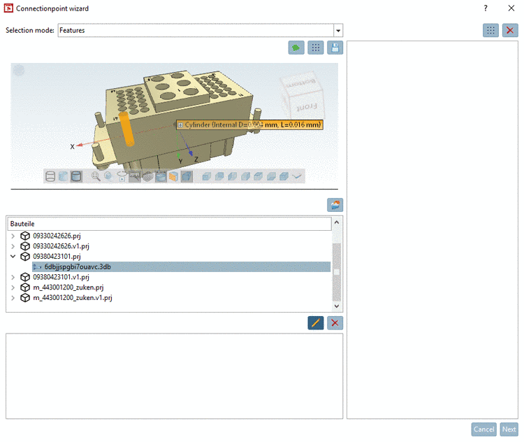 , the selected part is opened in PARTdesigner.In the list field, under Selection mode, following options are available: