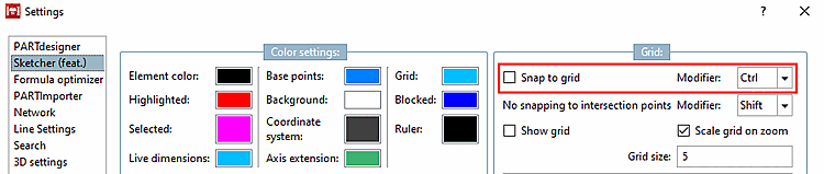 Vous trouverez également le même réglage directement dans Sketcher, dans la boîte de dialogue Paramètres rapides [Quick settings].