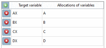 La zone de dialogue Variable cible [Target variable] / Affectation des variables [Variable assignment] est utilisée lorsque des variables (et éventuellement des valeurs) sont modifiées. La reconnaissance est en partie automatique.