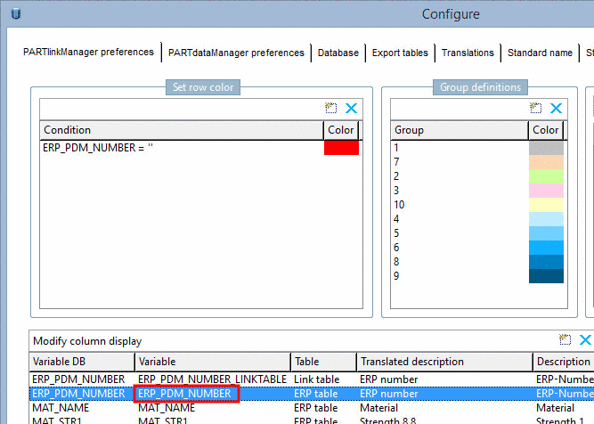Key value is the variable name of the database column. In the user interface, you can set it in PARTlinkManager under Extras menu-> Configure ERP environment.