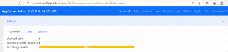 To check users, sessions and licenses, open AppServer Admin