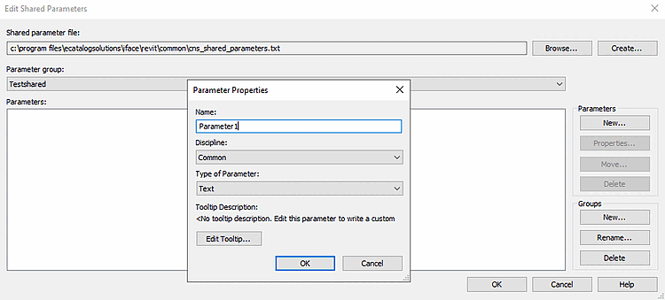 Attribuez un nom, sélectionnez les valeurs souhaitées dans les zones de liste de Discipline et Type of Parameter et confirmez en cliquant sur .