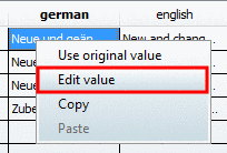 Right-click into the cell with the desired translation target language.