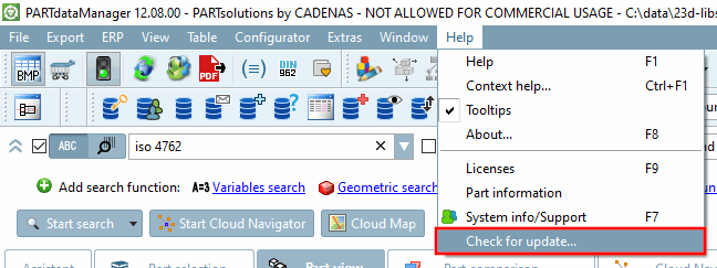 Si vous cliquez dans une installation PARTsolutions Professional ou eCATALOGsolutions sur l'option de menu Vérifier la mise à jour.. [Check for update...]. un message apparaît.