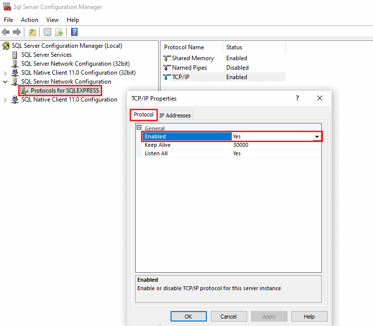 1. Lancez le gestionnaire de configuration de MSSQL.