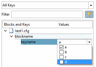 Dès qu'une modification a été apportée à une valeur de clé, la clé et la valeur apparaissent en caractères gras. De plus, le fichier de configuration est affiché en gras.