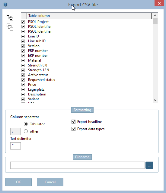 L'option Exporter l'en-tête [Export headline] doit être sélectionnée afin de garantir une fonction d'exportation et d'importation irréprochable ! |