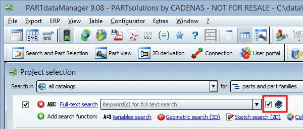 In PARTdataManager, check/uncheck the option in order to use the search database.