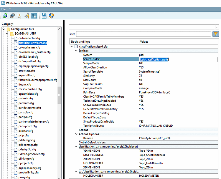 $CADENAS_USER\classificationwizard.cfg-> BlocSettings-> cléSearchFolders.cat/catalogname