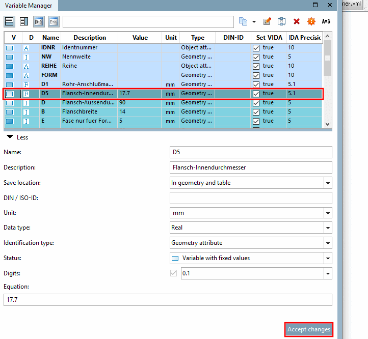 Sélectionnez la variable souhaitée dans le tableau du gestionnaire de variables (ou la colonne concernée dans le tableau des caractéristiques).