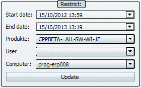In the list fields select the desired values. At Products, User, Computer you can select any number of values via checkboxes.