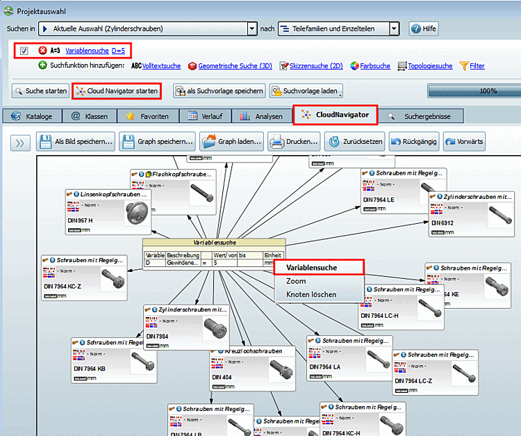 Appelez maintenant à nouveau la recherche de variables [Variables search] sur le nœud central via le menu contextuel.