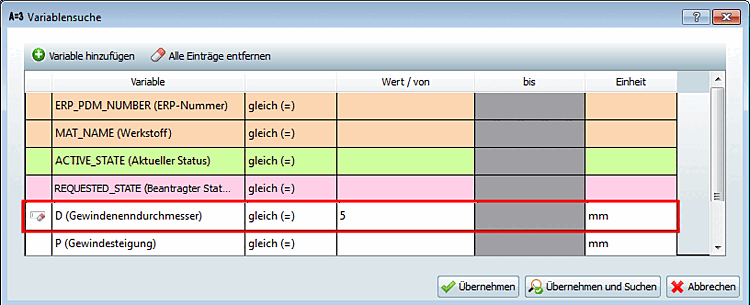 Ajoutez le symbole de remplacement'*' comme valeur dans la ligne ERP_PDM_NUMBER. Cela signifie que lors de la prochaine recherche, les parties de résultats doivent en plus comporter un numéro ERP.