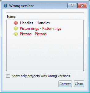 a difference between version number in the project file (verhist.cfg ) and in the LinkDB (column Version), the project cannot be displayed