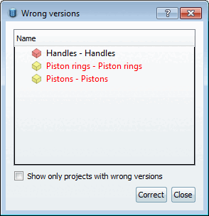 La commande Corriger les numéros de version [Correct version numbers] n'est normalement pas nécessaire, mais uniquement pour corriger des erreurs.