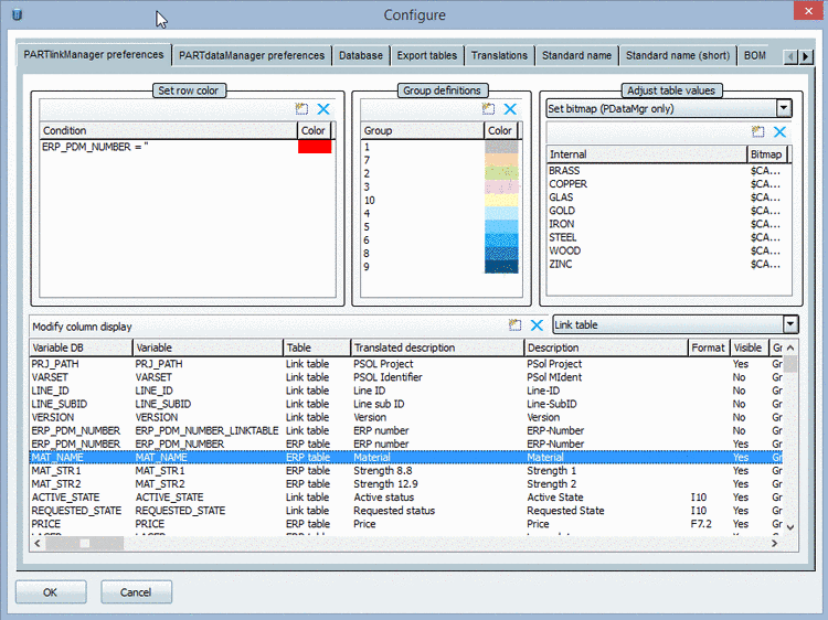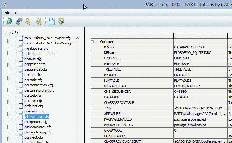 The configuration file plinkcommon.cfg contains user-independent settings for ERP integration (common settings or for example, for layout of the PARTdataManager and PARTlinkManager table, creation of needed database columns).