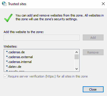 Si un client veut se connecter au serveur d'application et transmettre automatiquement les données utilisateur (SSO), soit à partir d'un navigateur intégré, soit à partir de n'importe quel navigateur, l'AppServer doit être accessible soit sous Intranet local, soit figurer dans la liste des sites de confiance.