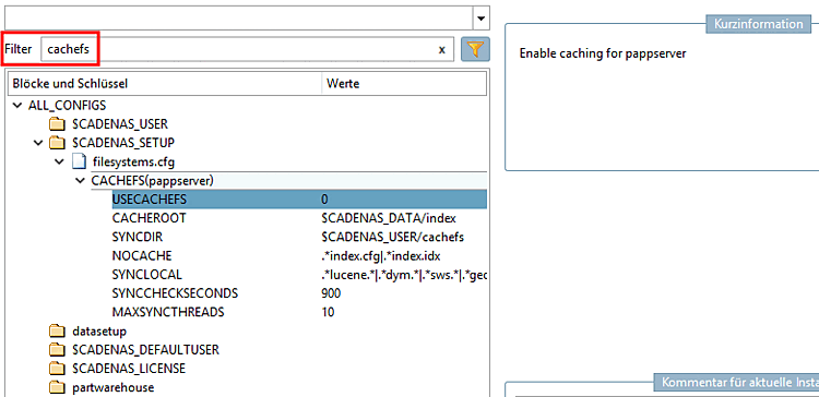 En utilisant le terme de filtrage "CACHEFS", vous trouverez immédiatement le réglage correspondant.