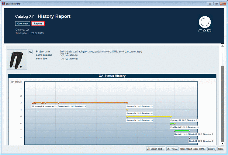 XMLREPORTS: Here, all reports are listed in the form of xml files (generated by the tool for batch verification "ECADPS3VERIFY"). When opening a file in any XML editor, you can see the information displayed in the dialog Extended ECLASS validation report, dialog area Report.