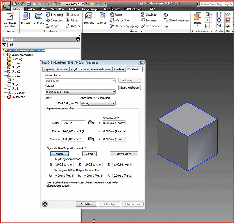 Dans Inventor, les propriétés pyhsiques sont accessibles sous iProperties -> onglet Physique.