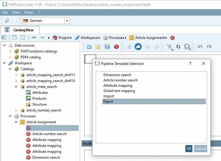 Pour l'exportation dans la base de données des liens, il importe peu que les attributions entre le catalogue local et le catalogue PARTsolutions aient été effectuées manuellement ou automatiquement et avec quel modèle. Les explications suivantes sont valables indépendamment de la procédure suivie jusqu'à présent.