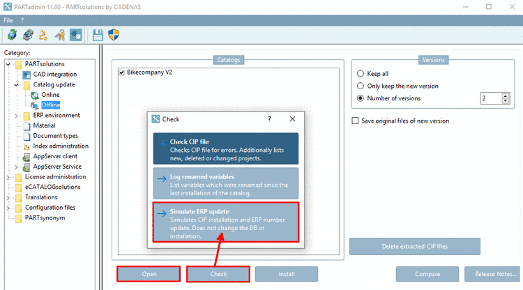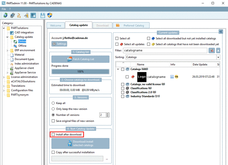 As the catalog check is available BEFORE the installation, please deactivate the checkbox Install after download.