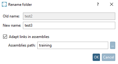 Les répertoires ou les dossiers peuvent contenir des pièces détachées qui font elles-mêmes partie d'un ensemble. Dans ce cas, l'assemblage doit également être "informé" du nouveau nom du répertoire. Sinon, l'assembly ne peut plus "trouver" les pièces détachées concernées et, par conséquent, ne peut plus assembler l'ensemble.