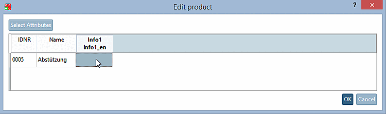 Vous voyez que l'attribut "Info" n'a pas encore été ajouté au produit. (Il n'est visible que sur le côté gauche de la boîte de dialogue).