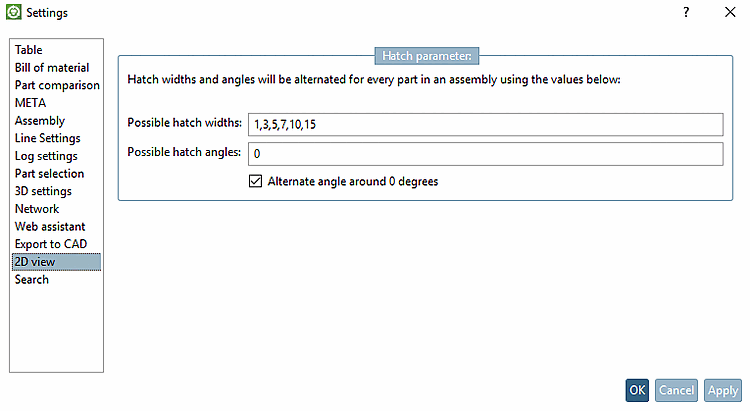 Les coupes sont indiquées par des hachures dans l'aperçu 2D. Les paramètres suivants permettent de configurer la manière dont elles sont alternées pour chaque pièce d'une structure :