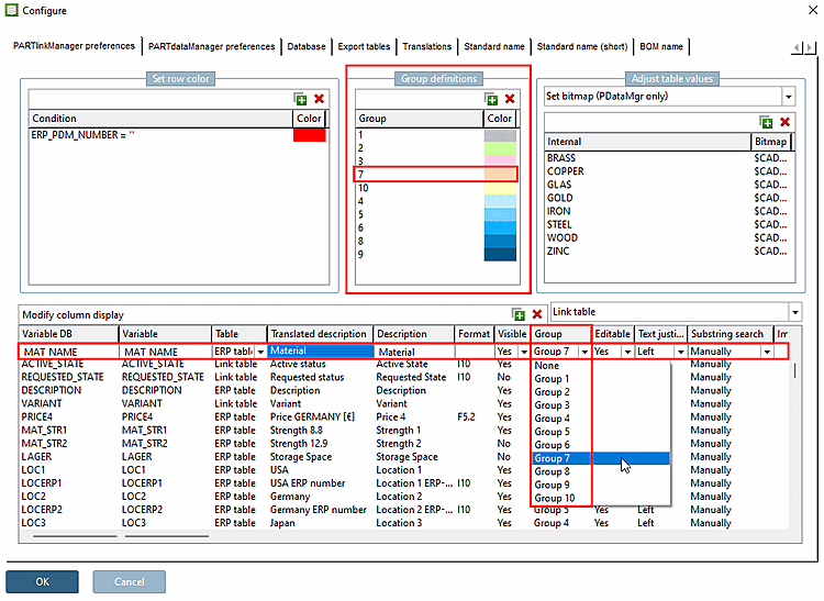 Pour plus de détails, voir Section 4.9.7, « Couleurs d'arrière-plan pour les colonnes ERP/PDM / plinkcommon.cfg -> Bloc [GROUP_COLORS] -> Clé GROUP<Nombre ».