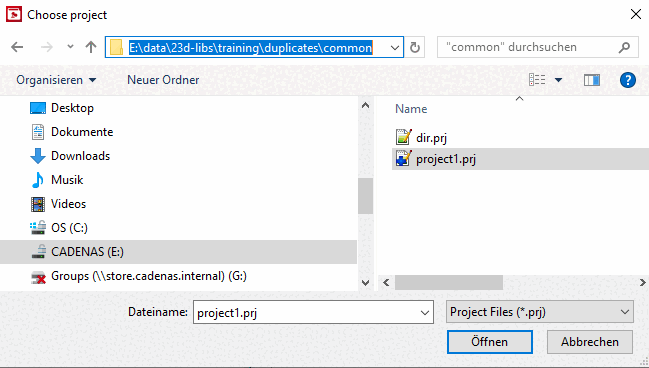 4. Naviguez dans le répertoire DATA jusqu'au projet souhaité et cliquez sur Ouvrir [Open].