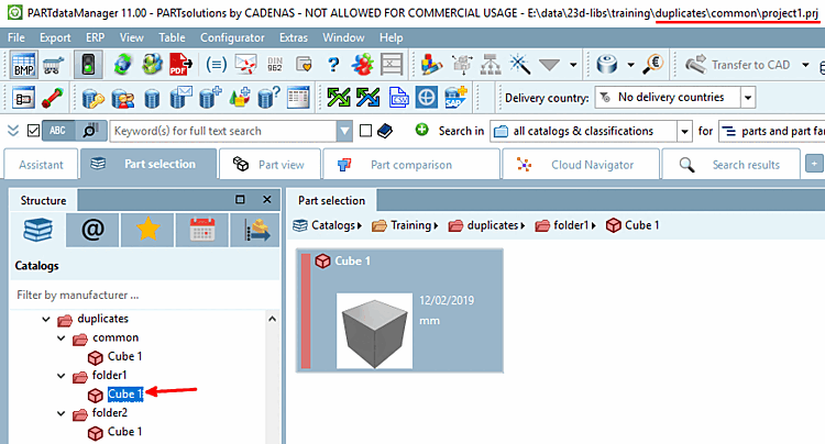 Il est donc recommandé de créer un dossier collectif central (ou même plusieurs) pour toutes les pièces utilisées plusieurs fois. Cela permet de minimiser la taille du catalogue et de créer la plus grande clarté possible.