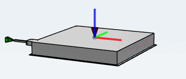 Le point d'attache est dirigé vers le mur (Z), l'axe Y (vert) est dirigé vers le bas et l'axe X vers la droite.