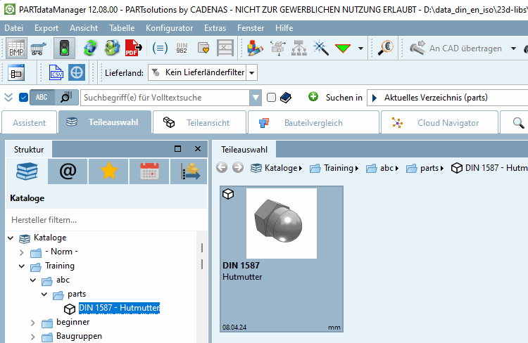 -> Dans PARTproject, l'image d'aperçu de l'écrou borgne est désormais remplacée. L'aperçu montre la représentation correspondante.