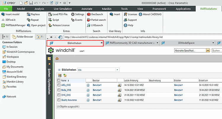 Bibliothèque: L'espace de travail d'une bibliothèque est un dossier superordonné de l'espace de travail de l'utilisateur. Comparez Fig. „Enregistrement du serveur“.