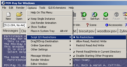 When opening the export format under PARTdataManager -> Export menu -> Image formats -> POV-Ray, the tabbed page POV-Ray format shows up with the Attributes, POV-Ray and Cross-section index pages, which are described below.