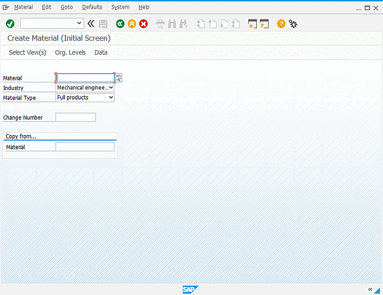 -> L' interface utilisateur graphique SAP s'ouvre avec le masque Create Material.