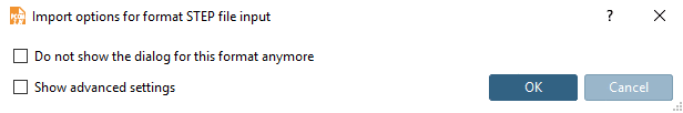 When selecting the STEP format the dialog box Import options for format STEP file input is opened.